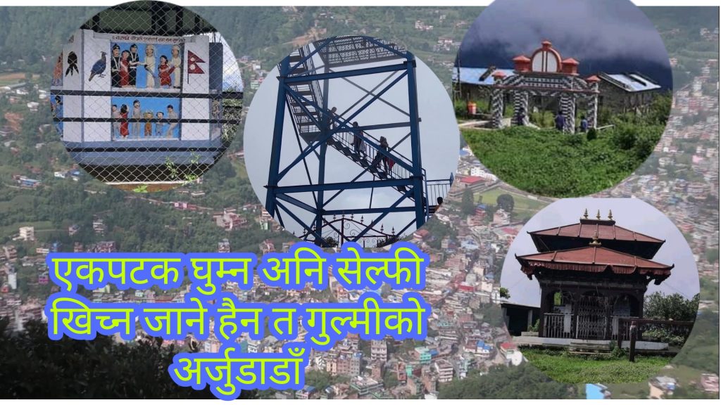छड्के न्युज\ भाद्र २२ गुल्मी-गुल्मी जिल्लाको रेसुङ्गा वडा नं ७ अर्जुन डाडाँमा निमार्ण गरिएको सेल्फी टावरले आन्तरिकतथा बाह्य पर्यटकको मन लोभ्याउने गरेको छ । कोरोना कहरका बिचपनि सेल्फी टावरमा सेल्फी खिच्न र मनमोहक दृष्यको अबलोकन गर्न आन्तरिक पर्यटकको आकर्षण बढ्न थालेको छ । सदरमुकाम तम्घास देखी ३ किलो मिटर उकालो चढेपछि पुगिन्छ अर्जुडाडाँ । अजुर्नडाडाँमा पुग्ने जो कोही पनि त्यहाँ र त्यस ठाउँबाट देखिने दृश्य अबलोकन गर्न मन पराउँछन् । माथिल्लो भेग हेर्दा रेसुङ्गा भने तल्लो भेग हेर्दा सदरमुकाम तम्घास बजार ।