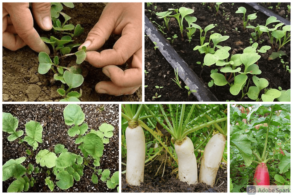 मुला ड्याङ ड्याडमा रोपिने तरकारी हो। कहिलेकाही सानो मुला वा साग खाने हेतुले छर्ने गरेको पनि देखिन्छ। यसको दुरी जात जात अनुसार फरक छ। सानो एक महिना जतिमा बाली तयार हुने जात जस्तै चालिस दिने मुला भएमा बाक्लो रोप्नु आवश्यक छ । ठूलो उष्ण प्रदेशीय वा एशियाली जातका मूला ४५ह२५ से।मि। को स्थानान्तरणमा लगाउँदछन् । यस्तो स्थानान्तरणमा लगाउन तयार गरी राखेको खेतमा ७५ से।मि। को फरकमा लामालामा ड्याड बनाइन्छ र हरेक ड्याङमा ४५ से।मि। को फरकमा २ लाईनमा बीउ खसालिन्छ । यसमा प्रतिरोपनी २५०(३०० ग्राम बीउ लाग्दछ ।