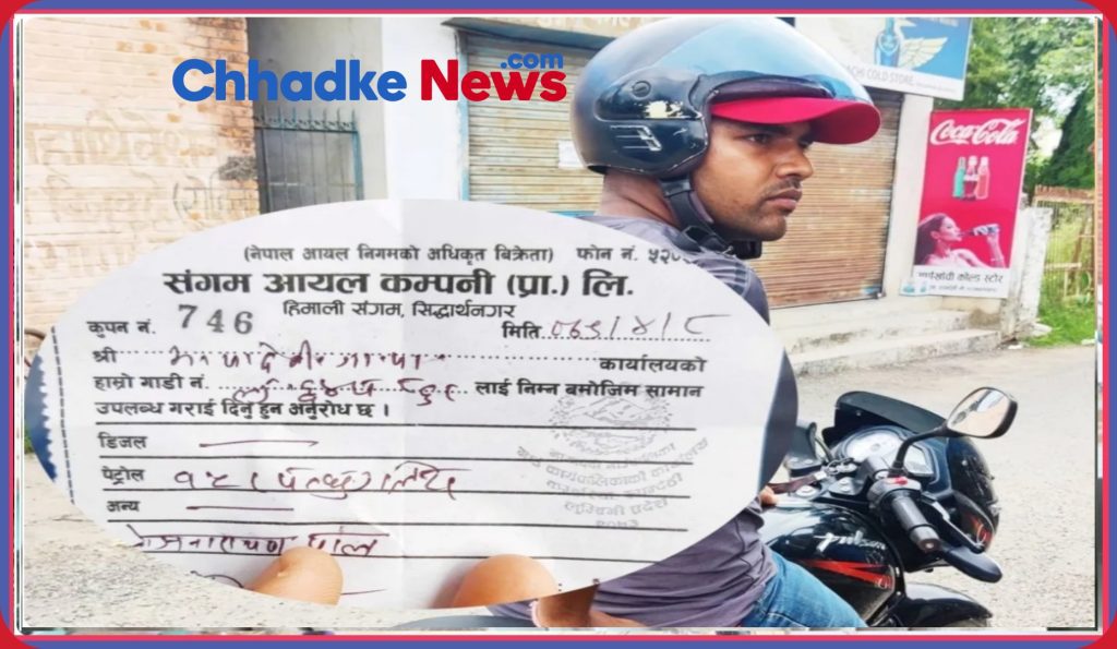 तेल हाल्ने मोटरसाइकल चालक भने तेज नारयण पाल होइनन्, प्रशासकीय अधिकृत तिम्लिसिनाले तेल वडाध्यक्षले नै हालेको दाबी गर्छन् ।