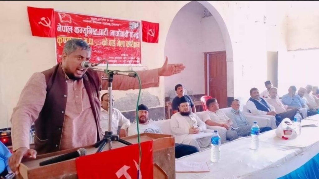 उपस्थित जनतालाई लुम्बिनी प्रदेश मदरसा बोर्डका उपाध्यक्ष मौलाना मशहूद खां नेपालीले हृदय देखि धन्यवाद दिदै नवनियुक्त पदाधिकारीहरुलाई हार्दिक बधाई तथा सफल कार्यकालको शुभकामना समेत दिए।सदियौ देखि नेपालमा चल्दै आएको राजतंन्त्र तथा जातिय विभेदलाई समाप्त गर्नाको लागि नेकपा माओवादी केन्द्रले ठुलो संघर्ष गरेको छ। देशमा माओवादी केन्द्रले ठुलो परिवर्तन ल्याएको छ भने बिच बिचमा केही असमाजिक तत्वहरुको कारणले पार्टीले धोका पनि खाएको छ । तर पनि माओवादी केन्द्रले देशको हक हितको लागि काम गर्नाको लागि उचित निर्णयगरि सुखी शान्ति समृद्धि नेपाल बाउने प्रयासमा लागेको छ। गाउगाउमा सिंहदरबार पुर्याउनका लागि लिएको संकल्पलाई पुरा गर्दै अगाडी बढ़ी रहेको छ। नेपाल सेनाले पदपुर्ति गर्नाको लागि यसै बिचमा भर्ना खोलेको छ । तर नेपालको अल्पसंख्यक मुस्लिम समुदायलाई बेवास्ता गरि अल्पसंख्यक मुस्लिम समुदायको हक अधिकार खोस्ने काम गरि रहेको तर हामी आफ्नो हक अधिकार पाउनको लागि संघर्ष गर्छौ र कुनै नकुनै दिन हामी पक्कै पाउछौ भन्दै खां नेपालीले गुनासो समेत पोखेका थिए।