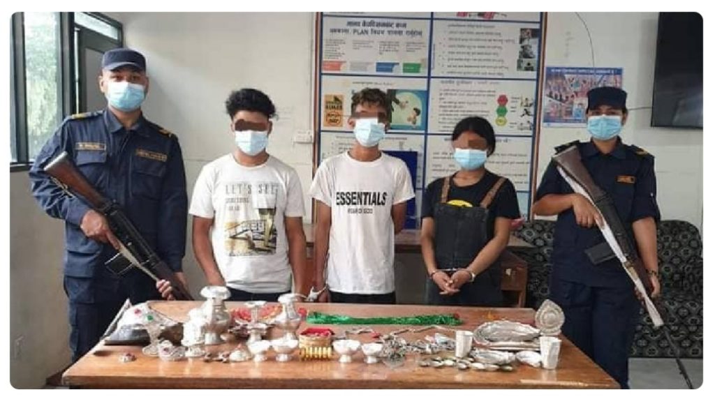 साउन ०२, काठमाडौं – काठमाडौंको नक्सालको नागपोखरीस्थित सन्तोषी माताको मन्दिरको ताल्चा फोडेर सुन तथा चाँदीका गरगहना चोरीमा संलग्न रहेको आरोपमा प्रहरीले तीन जनालाई पक्राउ गरेको छ ।