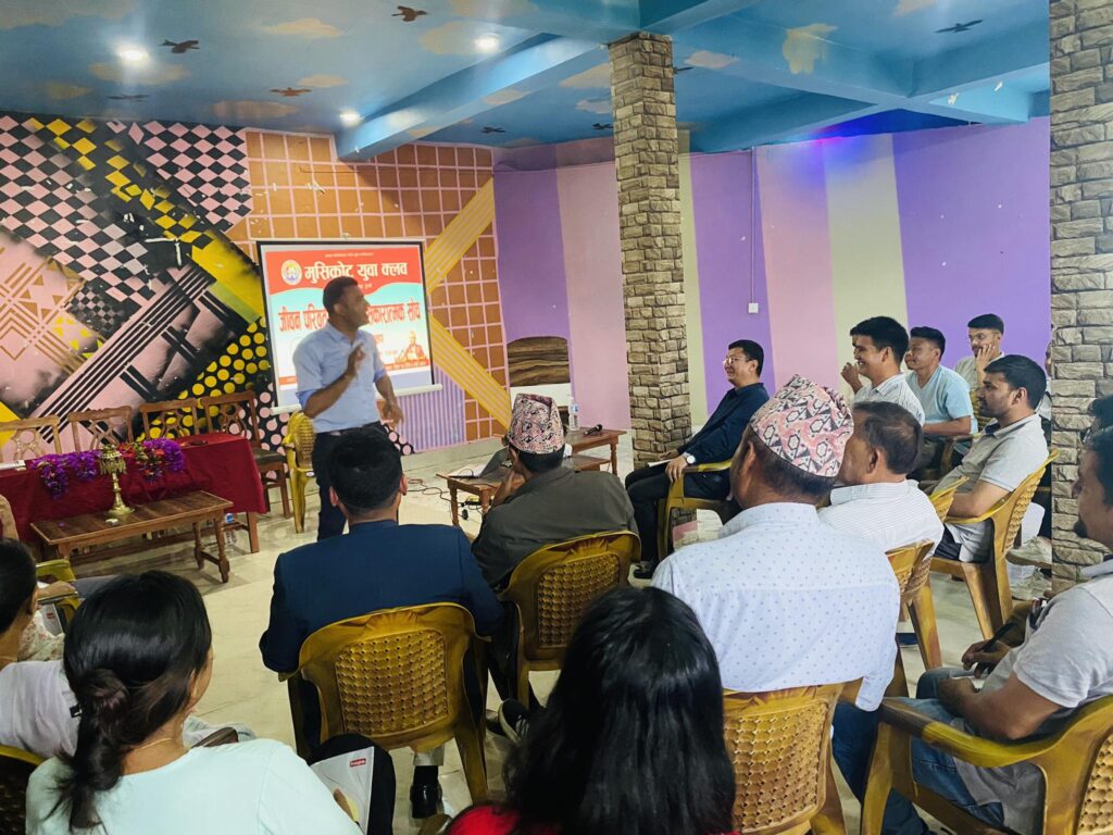 मुसिकोट युवा क्लव, मुसिकोट गुल्मीको आयोजनामा जिवन रुपान्तरणका लागि सकारात्मक सोच सम्बन्धि एक दिने उत्प्रेरणात्मक अभिमुखिकरण कार्यक्रम वामीटक्सारमा सम्पन्न भएको छ । युवाहरुमा आएको बढ्दो निराशालाई कम गर्दै सकारात्मक सोचको विकास गर्ने उद्धेश्य सहित आयोजना गरिएको कार्यक्रममा ६० जना भन्दा वढि युवाहरुको सहभागिता रहेको थियो।