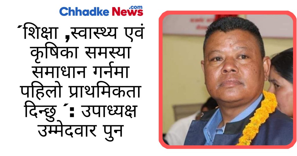 बैशाख १७, गुल्मी – छत्रकोट गाउँपालिका गुल्मीको उपाध्यक्ष पदका उम्मेदवार गुमान शिंह पुनले आफू विजयी भए सबैभन्दा पहिले शिक्षा ,स्वास्थ्य एवं कृषिका समस्या समाधानमा लाग्ने बताएका छन् । चेतनाको अभावका कारण बाल मजदुर बढेको, प्राथमिक विद्यालयमा अझै पनि सबैको पहुँच नभएको उल्लेख गर्दै उनले यस्तो बताएका हुन् ।
