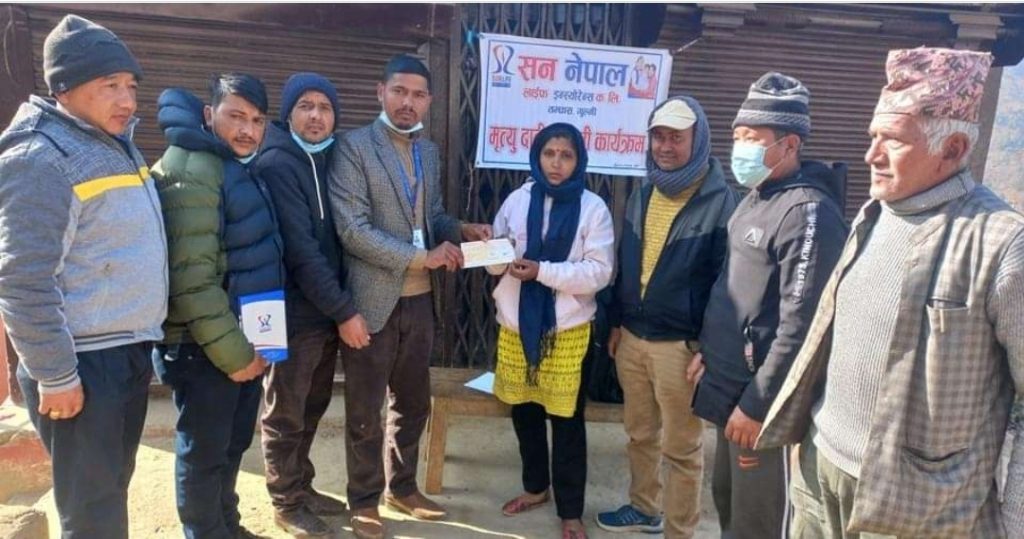 निजले सन नेपाल लाईफ गुल्मी शाखामा दुई वर्ष अघि रु एक लाख विमांकको नवीन आजीवन बीमा पोलिसी गरेका थिए, कृषि कर्म गर्दै आइरहेका वि.क.को घरमै अचानक मृत्यु भएको थियो । कम्पनिले उक्त रकम बरावरको चेक विमित स्व. लोक बहादुर विकको श्रीमती सावित्रा वि.क.लाई एक कार्यक्रमका विच हस्तान्तरण गरेको थियो ।
