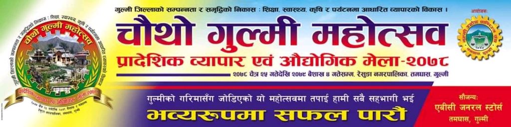 गुल्मी उघाेग वाणिज्य संघले महाेत्सव आयाेजना गर्न लागेको चौंथो गुल्मी महाेत्सव आर्थिक,साँकृतिक एवम् पर्यटकीय हिसाबले पनि अत्यन्तै महत्त्वपूर्ण रहेको भन्दै महाेत्सव लाई स्थानीय तहबाट सक्दाे सहयाेग गर्ने जनाएको प्रचार प्रसार समितिका संयाेजक तारा प्रसाद भुषालले बताउनु भयाे। महोसत्वमा दुई सय स्टल रहने गुल्मी उद्योग बाणिज्य संघ गुल्मीले जनाएको छ ।
