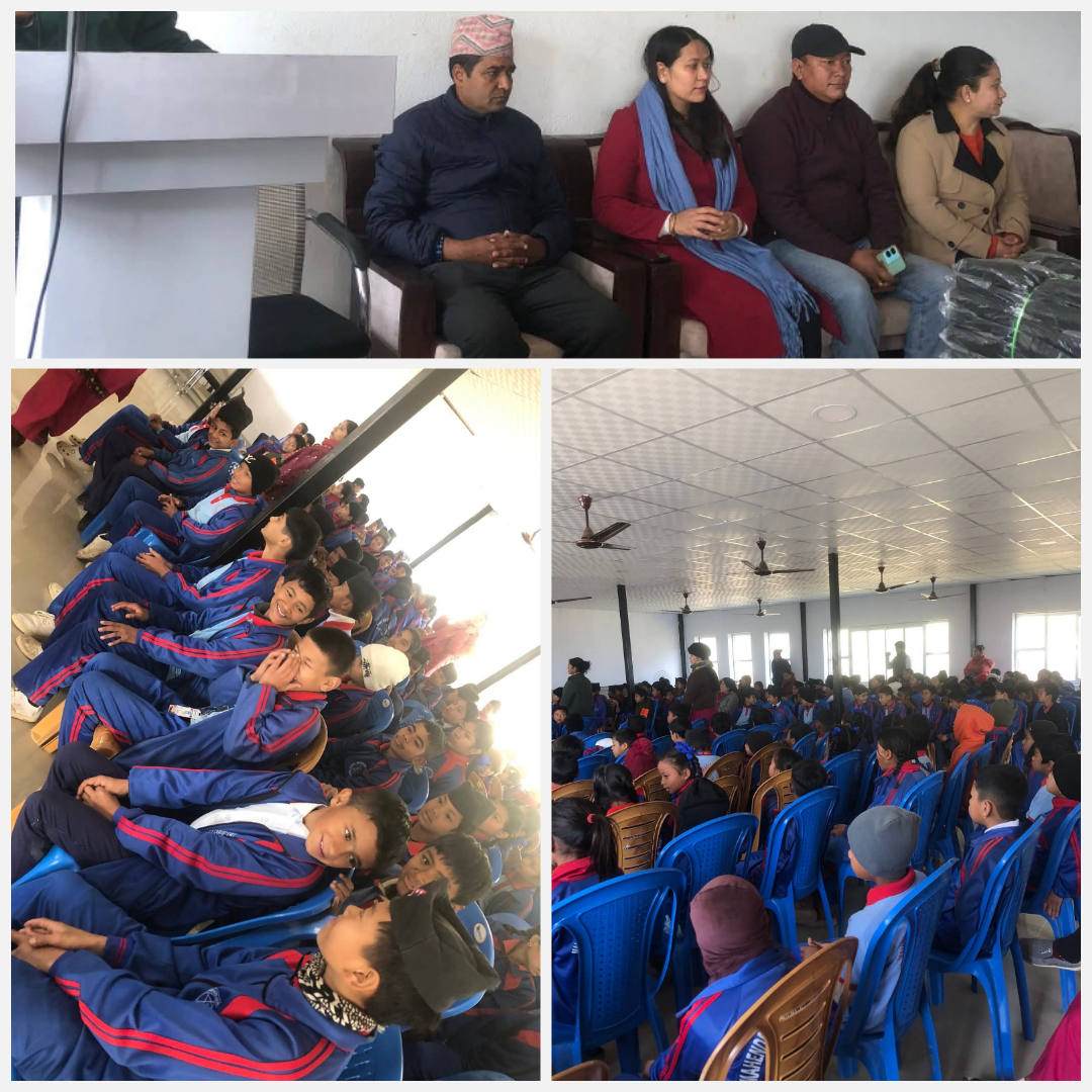 स्वर्गिय बुवाको स्मृतिमा छोरीहरु , नेपाल बैङ्क लिमिटेड वामी शाखाकी प्रबन्धक मीरा शाक्य र शाइन रेसुङ्गा बैङ्क लिमिटेड वामी शाखाकी प्रबन्धक सजना शाक्यल महेन्द्र आदर्श नमुना माध्यमिक विद्यालय वामी टक्सार गुल्मीका कक्षा बालविकासदेखि ६ सम्मका २२६ विद्यार्थीहरुलाइ दुई लाख २६ हजारको लागतमा न्यानो पोशाक वितरण गर्नु भएको हो ।